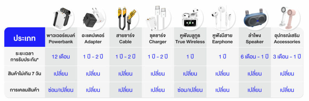 เงื่อนไขการรับประกันสินค้าภายใน 1 ปี (แบตเตอรี่สำรอง)