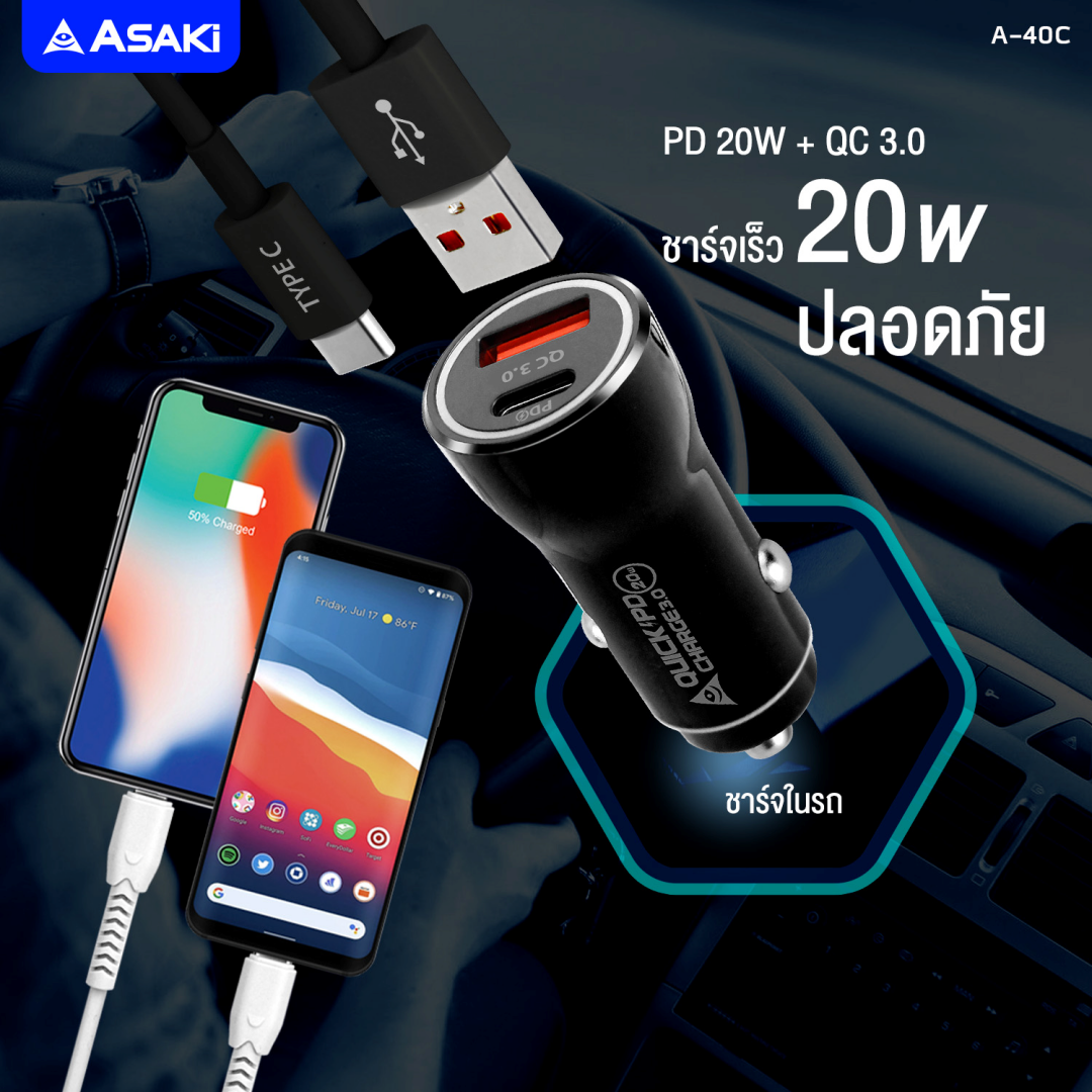 The car charger (DC) from the cigarette lighter socket in the car, 2 charging ports, can be used from both the USB port and the PD port, can charge the house with a maximum power of 20W.