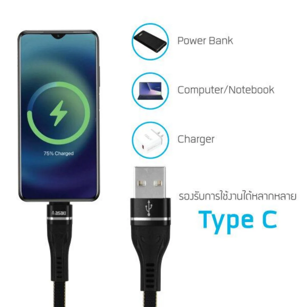 Asaki Charger Adapter and 3IN1 Charging Cable (Lightning / Micro / TYPE-C) : A-2765