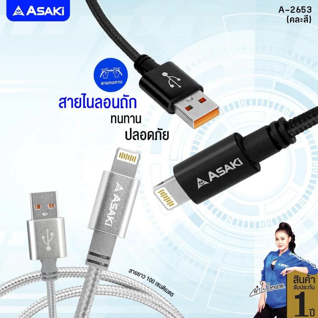 Asaki ที่ชาร์จอเนกประสงค์ หัวชาร์จไฟบ้าน และสายชาร์จ Lightning รุ่น A-2656