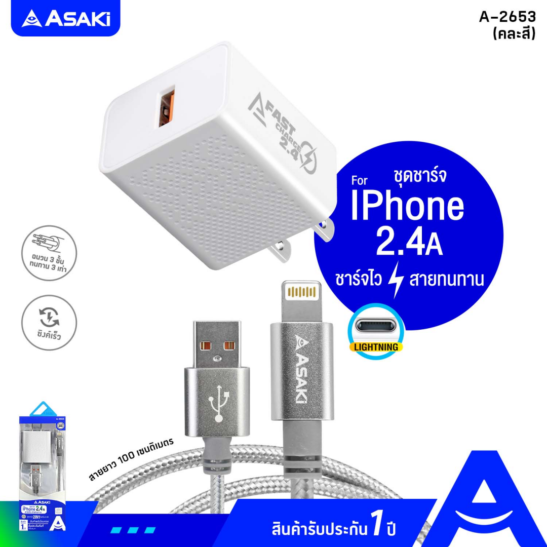 Asaki ชุดชาร์จอเนกประสงค์ อะแดปเตอร์ชาร์จไฟบ้าน และสายชาร์จ Lightning USB รุ่น A-2530