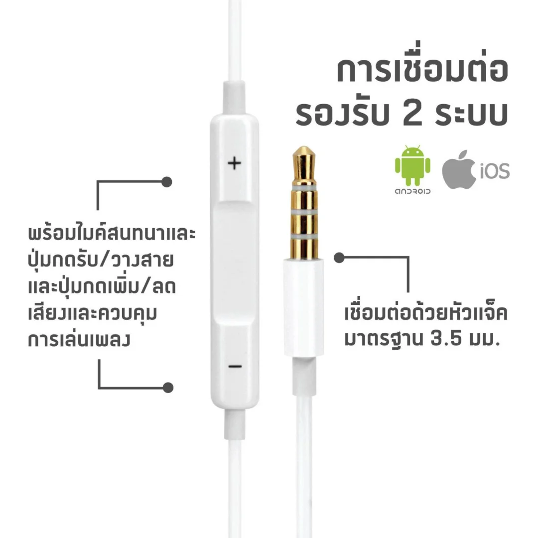 หูฟังสมอลทอล์ครูปแบบเอียร์โฟน และรีโมทคอนโทรล ใช้ได้กับ Smartphone Android/iOS/Tablet/MP3/MP4 (เฉพาะรุ่นที่รองรับ)