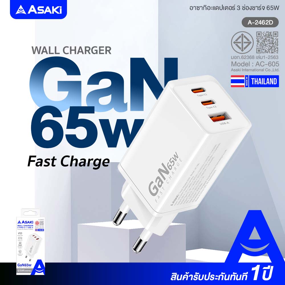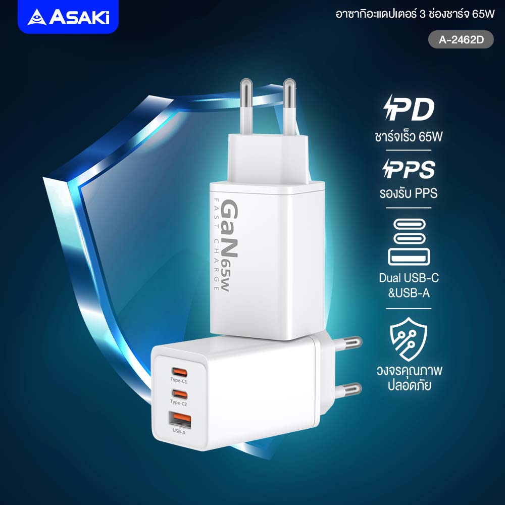 ประเภท : อะแดปเตอร์ 3 ช่องชาร์จ Type-c และ USB-A