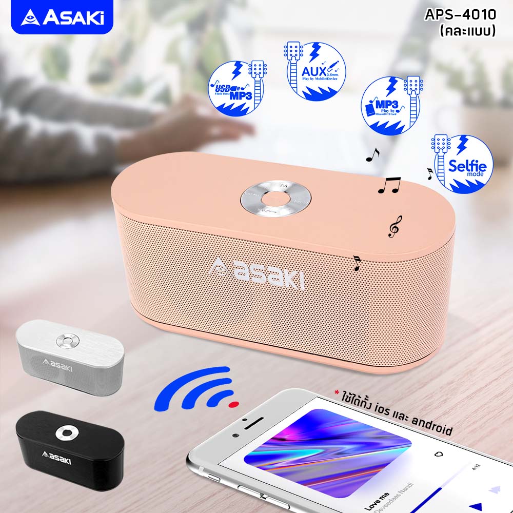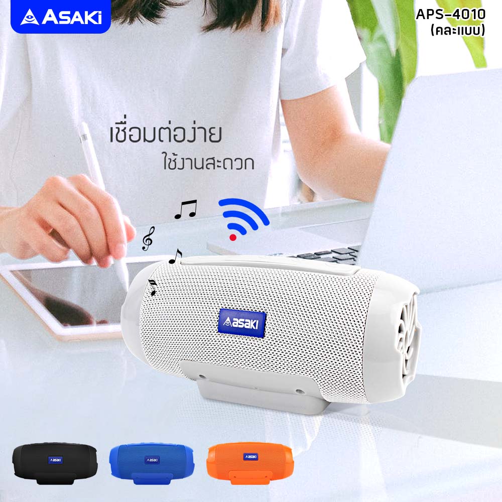 Asaki ลำโพงไร้สาย แบบพกพา เชื่อมต่อง่าย กะทัดรัด พกพาสะดวก รุ่น APS-4017