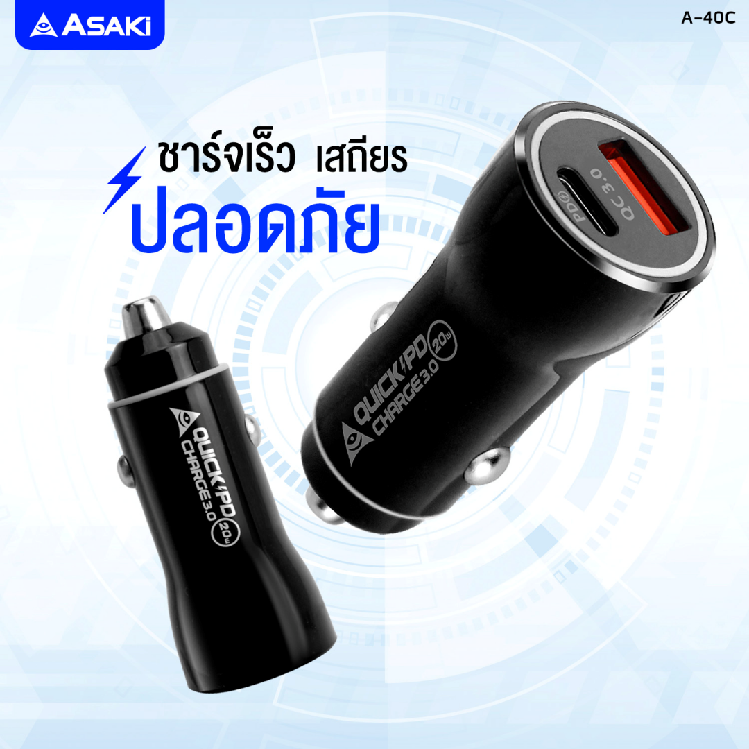 ประเภท : ที่ชาร์จรถ 2 ช่องชาร์จ USB-A และ PD