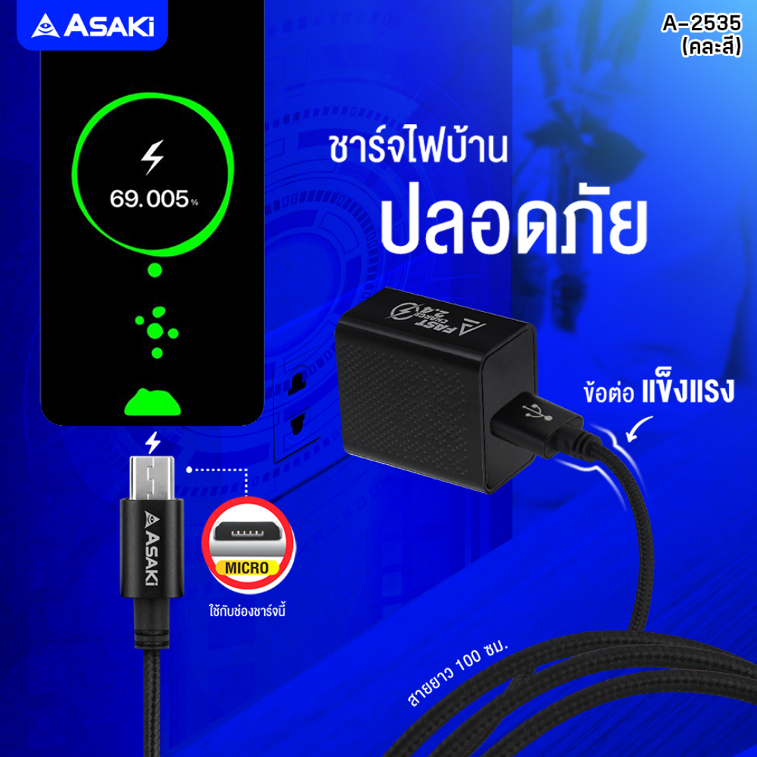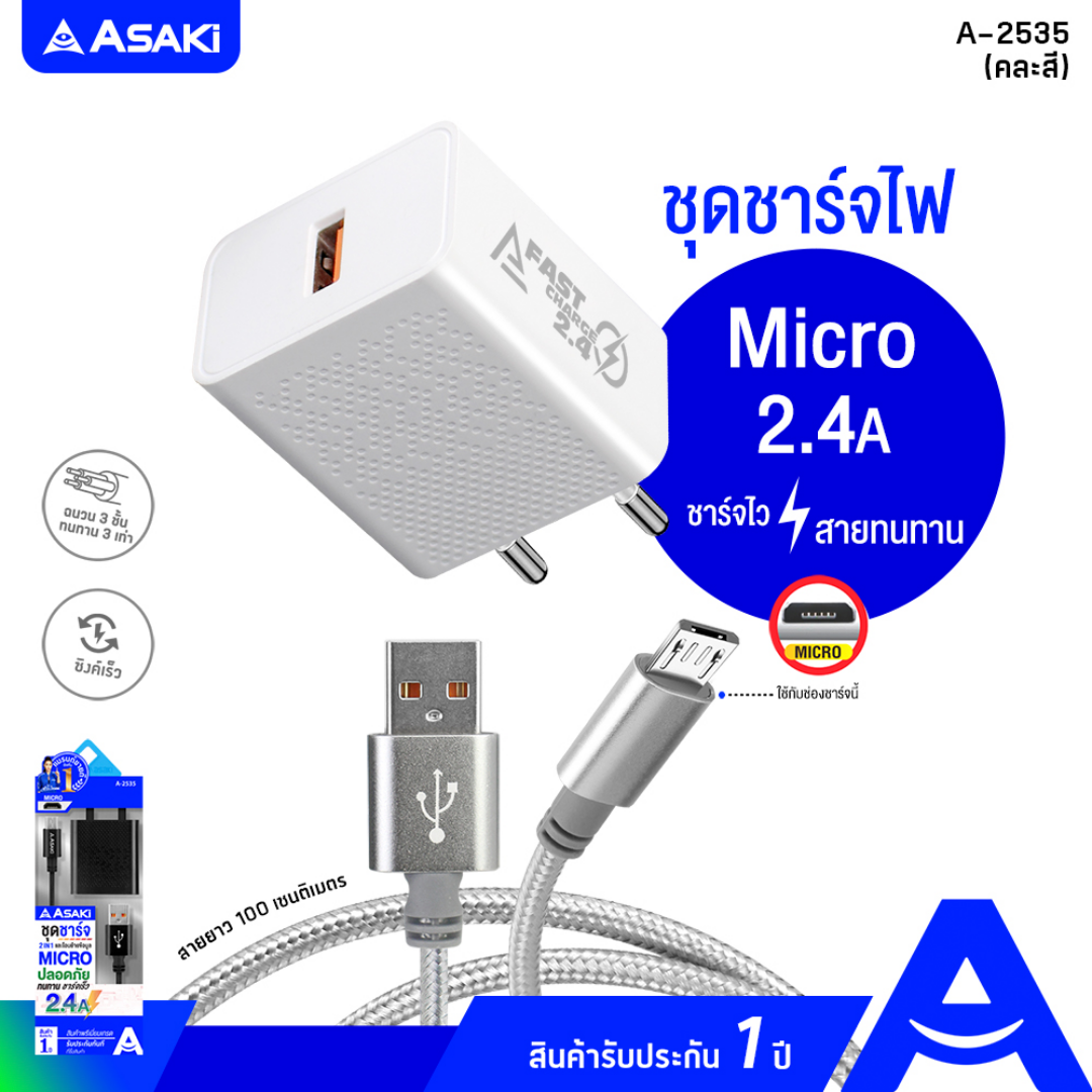 ประเภท : ชุดชาร์จอเนกประสงค์ อะแดปเตอร์และสายชาร์จ Micro USB