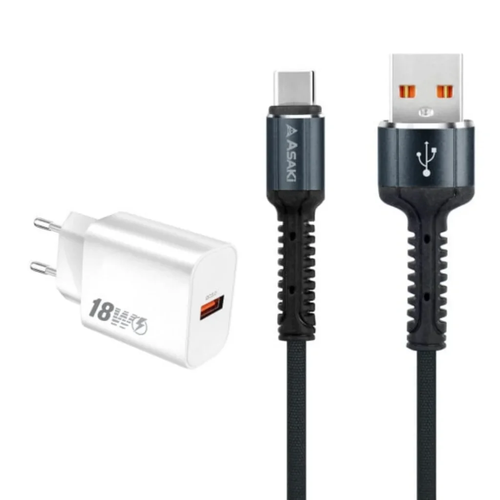 Asaki ชุดชาร์จอเนกประสงค์ อะแดปเตอร์ชาร์จไฟบ้าน และสายชาร์จ Type-C USB รุ่น A-2201