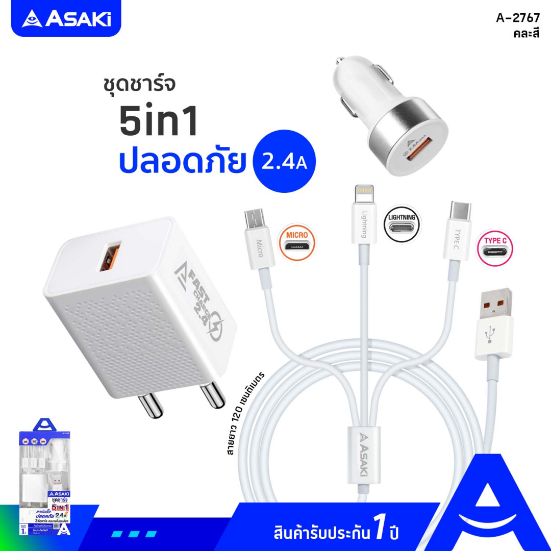 ประเภท : ชุดชาร์จอเนกประสงค์ อะแดปเตอร์ชาร์จไฟบ้าน ที่ชาร์จในรถยนต์และสายชาร์จ 3IN1 (Type-C / Micro / Lightning)