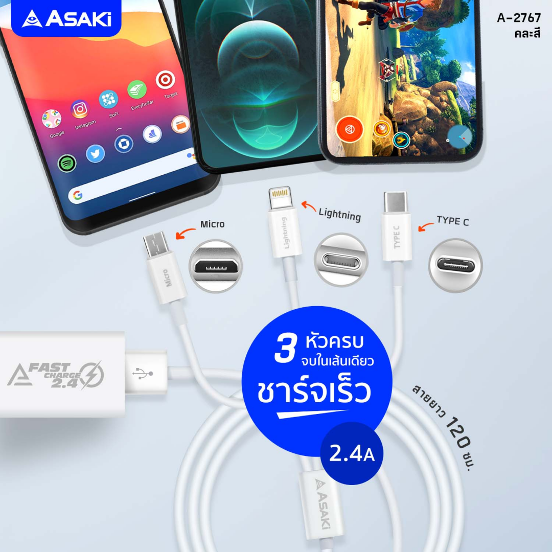 ชุดชาร์จอเนกประสงค์ อะแดปเตอร์ & สายชาร์จ 3IN1 ยาว 1 เมตร
