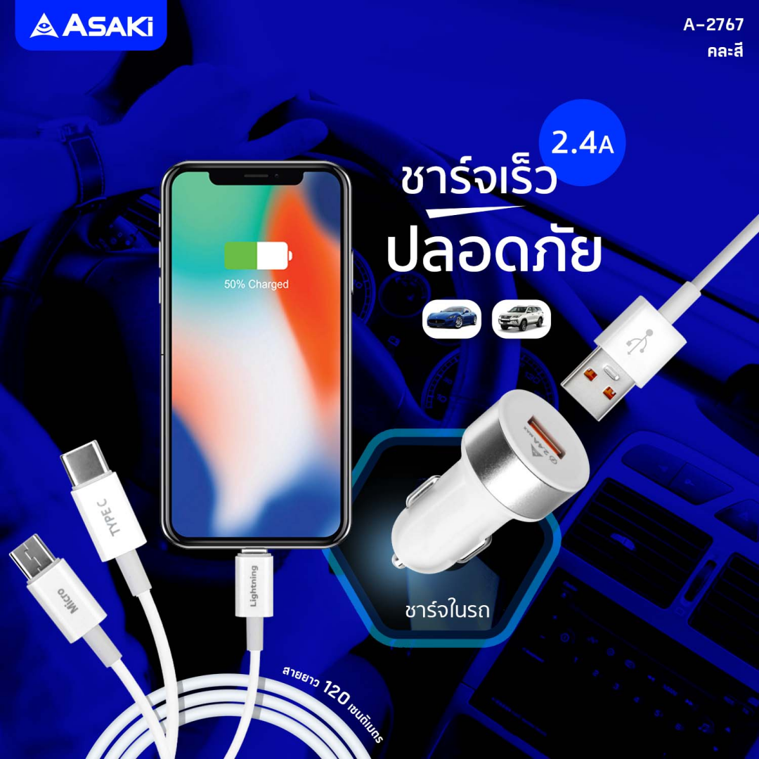 ชุดชาร์จอเนกประสงค์ อะแดปเตอร์ ที่ชาร์จในรถ & สายชาร์จ 3IN1 ยาว 1.2 เมตร