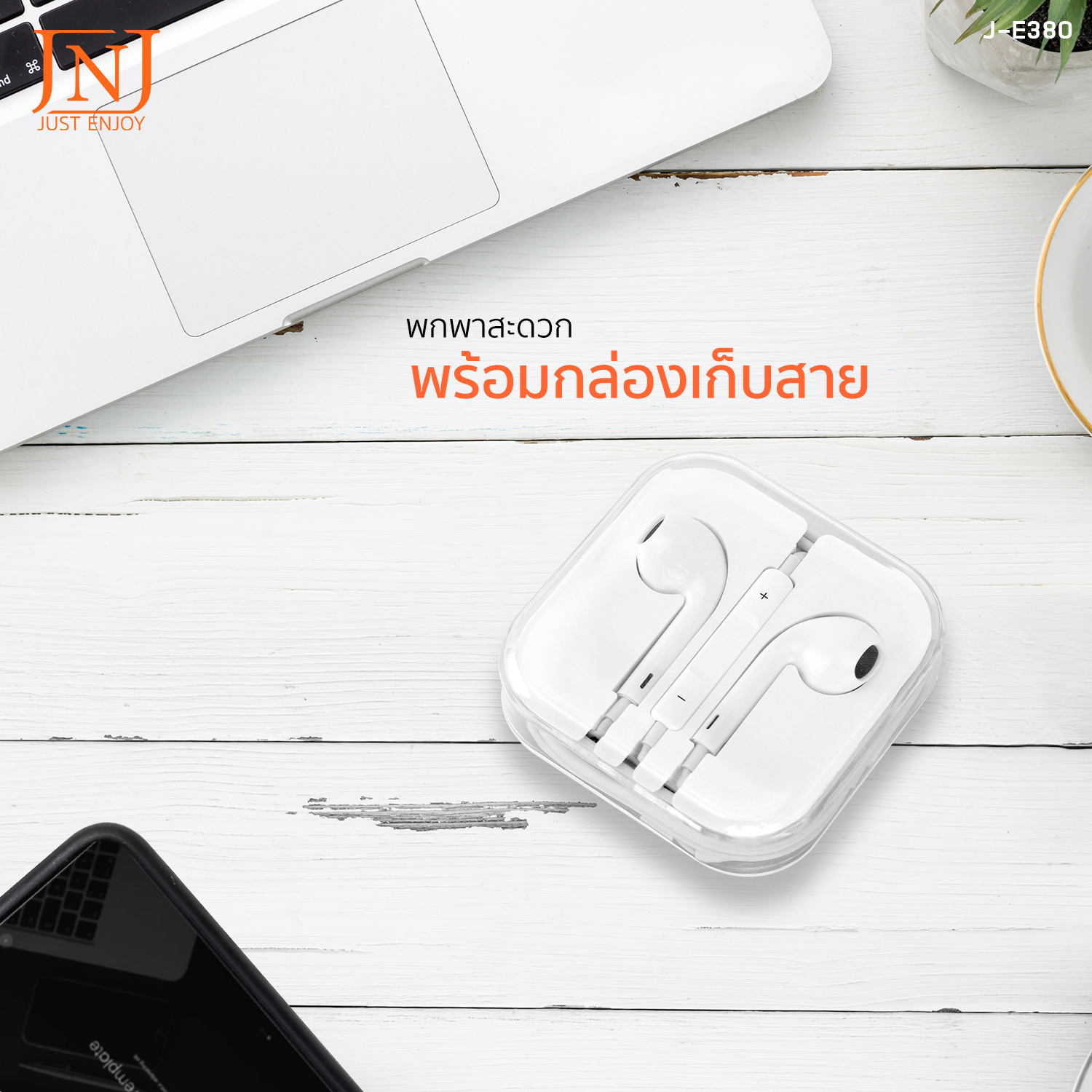 JNJ หูฟังเอียร์โฟนสมอลทอล์ค และรีโมทคอนโทรล แจ็ค 3.5 มม. รุ่น J-E360