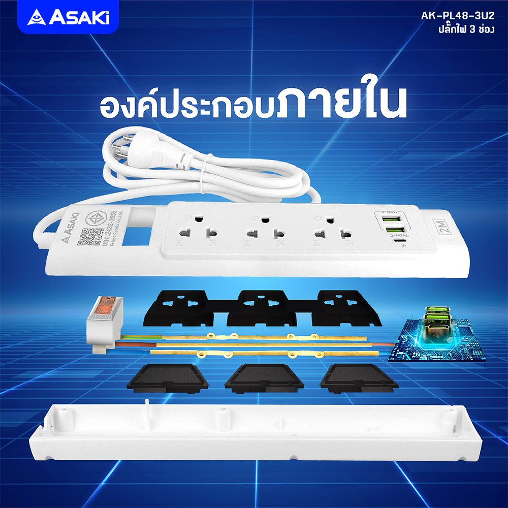 - พร้อมสวิชต์เปิด-ปิด ป้องกันกระแสไฟเกิน ไฟฟ้าลัดวงจร ไฟกระชาก ช่วยตัดไฟอัตโนมัติ