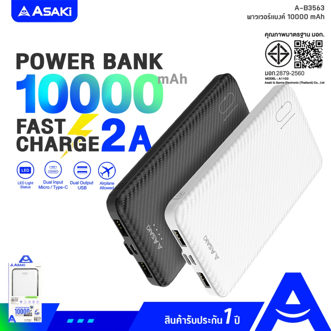 Asaki แบตเตอรี่สำรอง ความจุ 10000 mAh รุ่น A-B3557