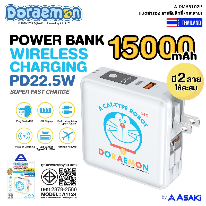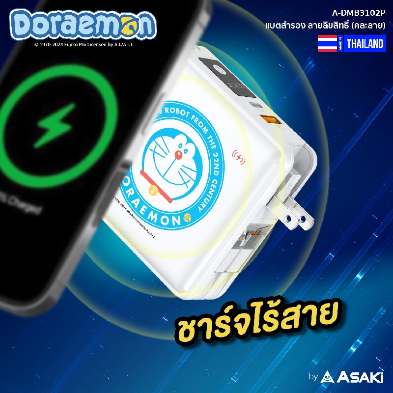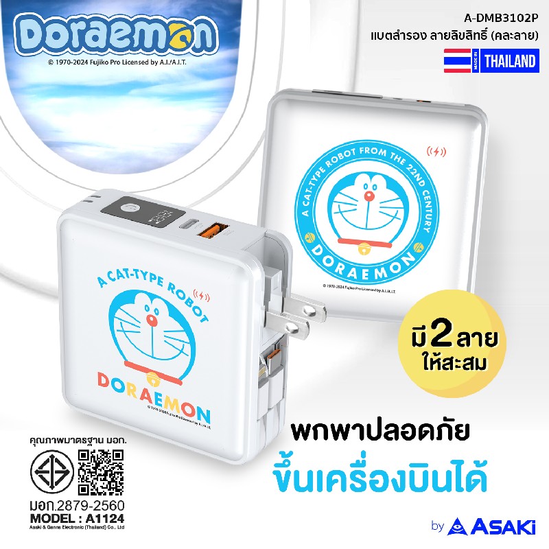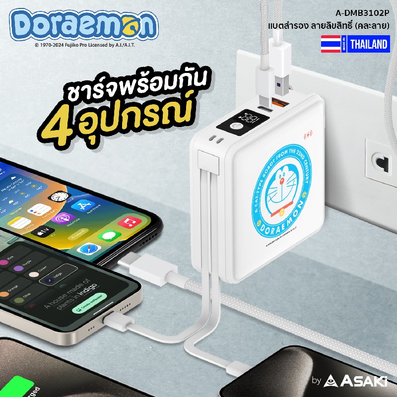 Doraemon Powerbank ความจุ 10000 mAh ลิขสิทธิ์แท้ หน้าจอ LED บอกปริมาณแบตเตอรี่ พร้อม 4IN1 ในตัว (Micro/Type-C / Lightning) สามารถชาร์จหลายอุปกรณ์พร้อมกันได้ ได้รับมาตรฐาน มอก. ใช้งานปลอดภัย