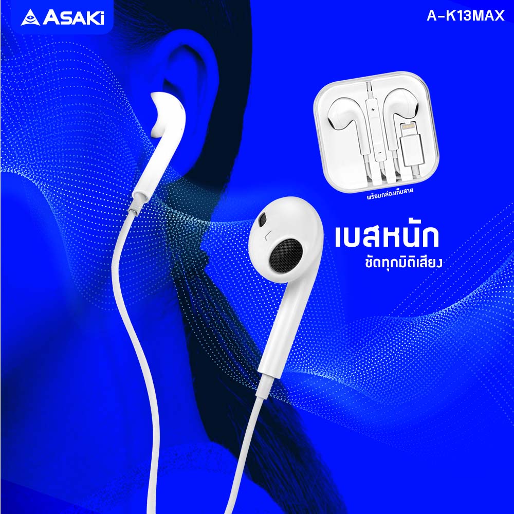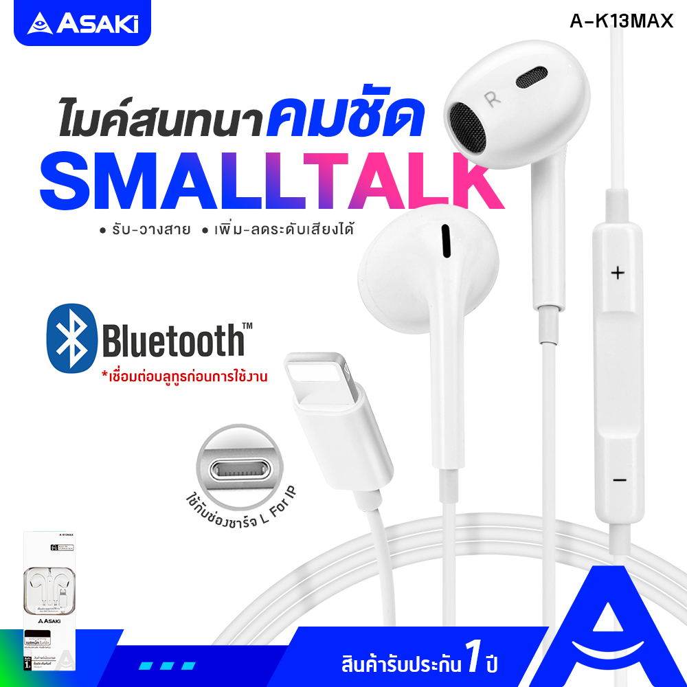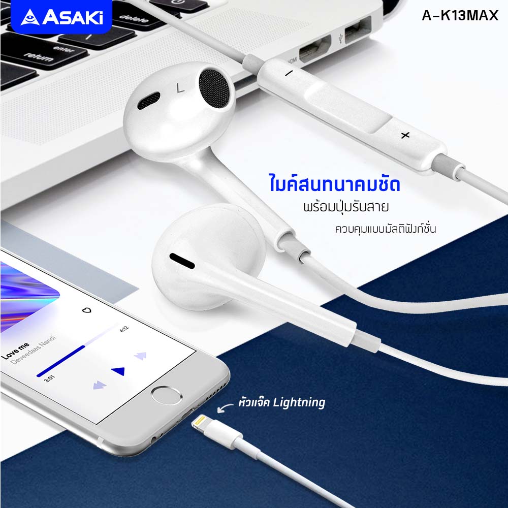 Asaki หูฟังเอียร์โฟนสมอลทอล์คและรีโมทคอนโทรล แจ็ค Lightning รุ่น A-K15MAX
