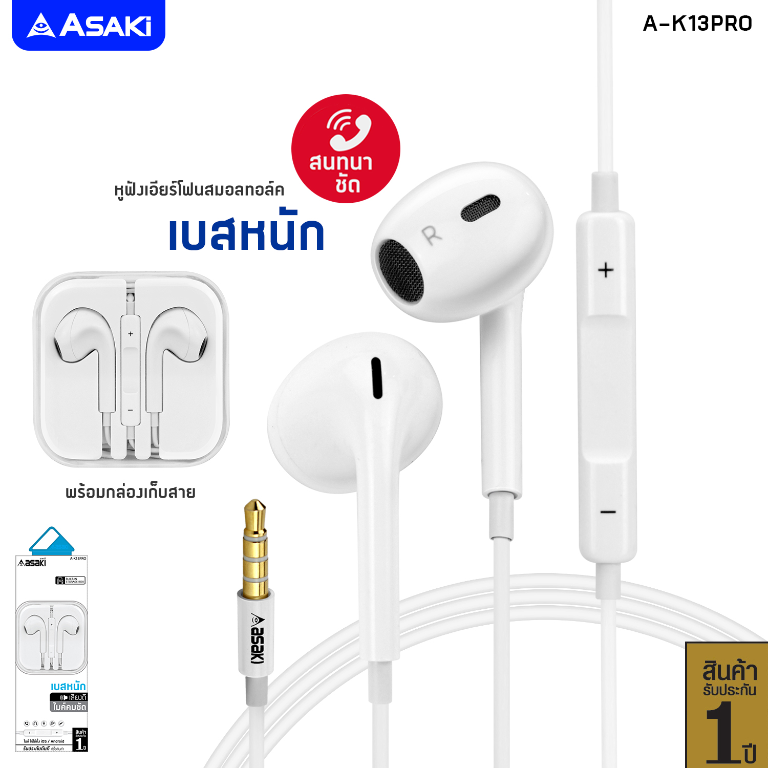 Asaki หูฟังเอียร์โฟนสมอลทอล์ค และรีโมทคอนโทรล แจ็ค 3.5 มม. รุ่น A-K15Pro