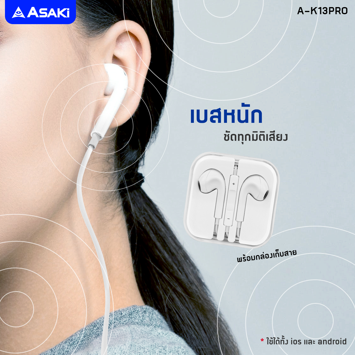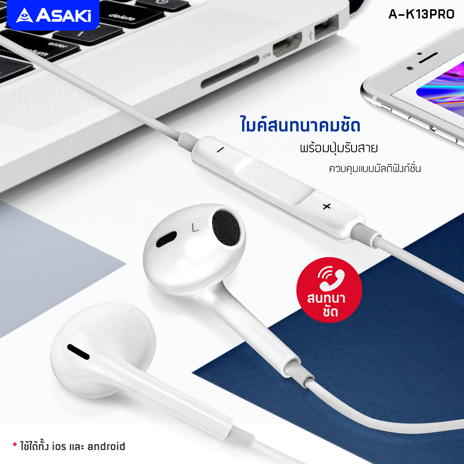Asaki หูฟังเอียร์โฟนสมอลทอล์คและรีโมทคอนโทรล แจ็ค Lightning รุ่น A-K13MAX