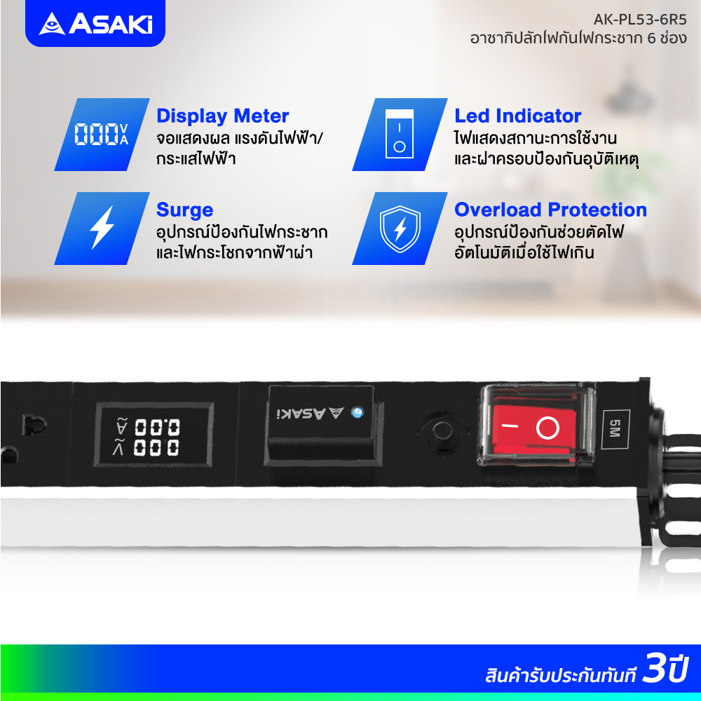ปลั๊กราง AK-PL54 4U5 ตั้งเวลาจ่ายไฟแบบดิจิตอล ตัดไฟอัตโนมัติ ได้นาน 24 ชม. 4 ช่องเต้าเสียบ สายยาว 5 เมตร มี มอก. รับประกัน 3 ปี