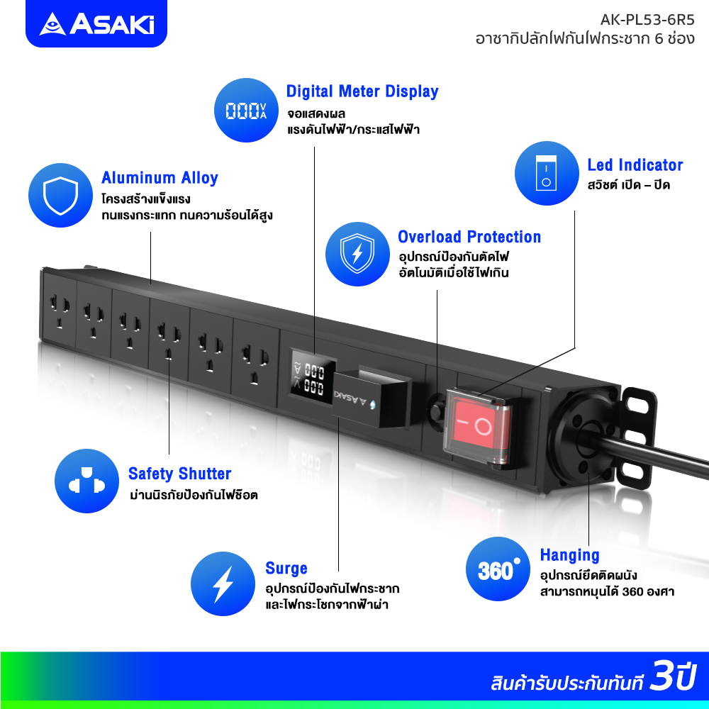- พร้อมสวิชต์เปิด-ปิด ป้องกันกระแสไฟเกิน ไฟฟ้าลัดวงจร ไฟกระชาก ช่วยตัดไฟอัตโนมัติ