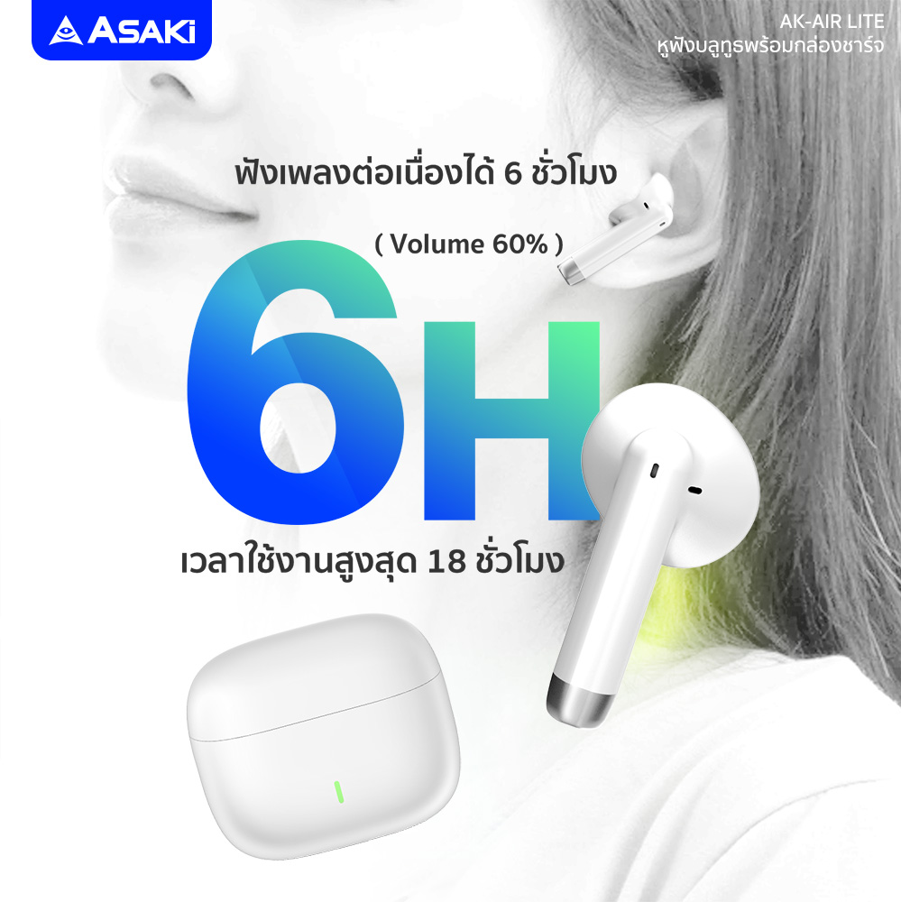 Asaki หูฟังบลูทูธไร้สายพร้อมกล่องชาร์จ รุ่น A-K6667