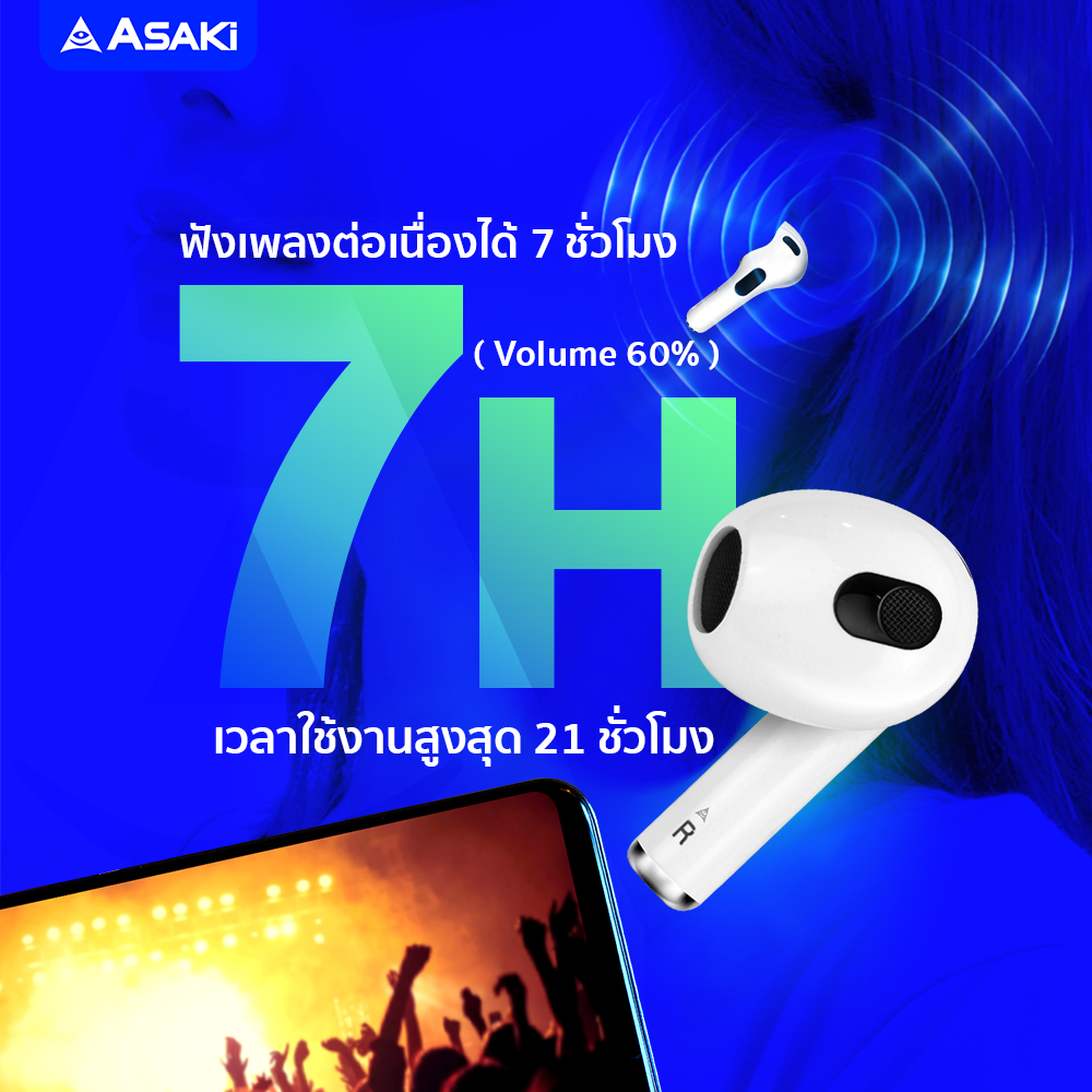 TrueWireless ทรูไวเลส หูฟังบลูทูธไร้สาย Asaki AK-Ait Lite รับประกัน 1 ปี ระบบสัมผัส แบตอึด ใช้ได้นาน ไมค์ในตัว เสียงดัง เบสหนัก