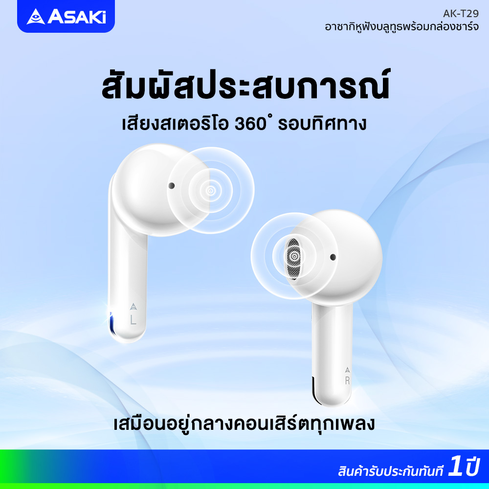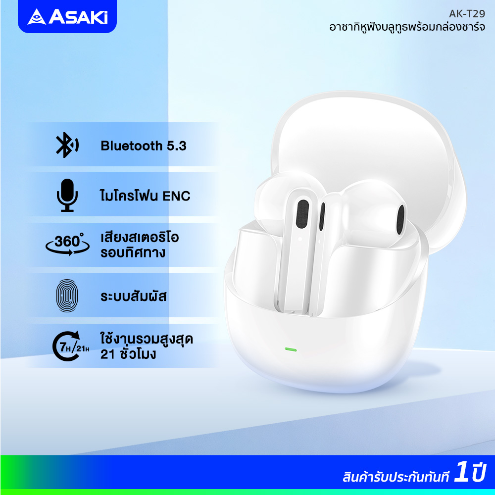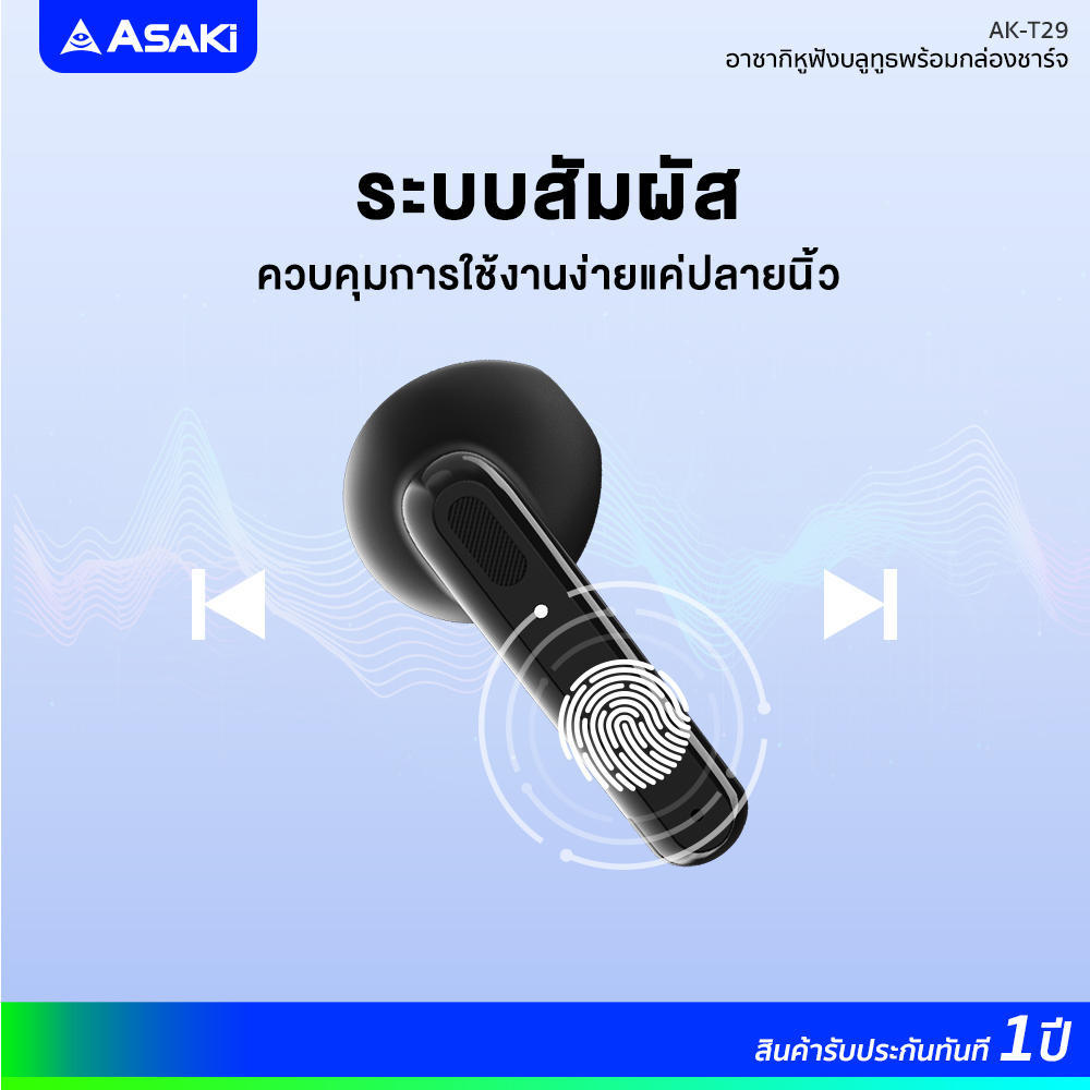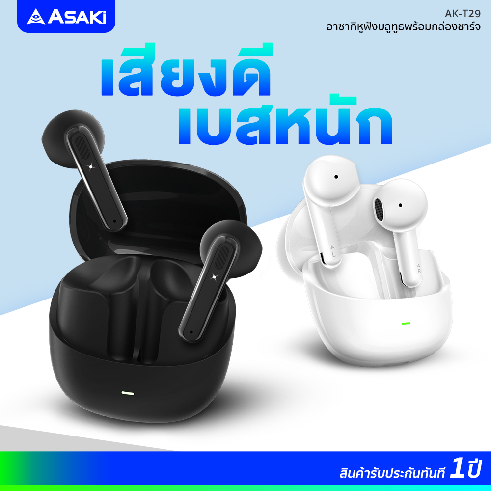 TrueWireless ทรูไวเลส หูฟังบลูทูธไร้สาย Asaki AK-Ait Lite รับประกัน 1 ปี ระบบสัมผัส แบตอึด ใช้ได้นาน ไมค์ในตัว เสียงดัง เบสหนัก