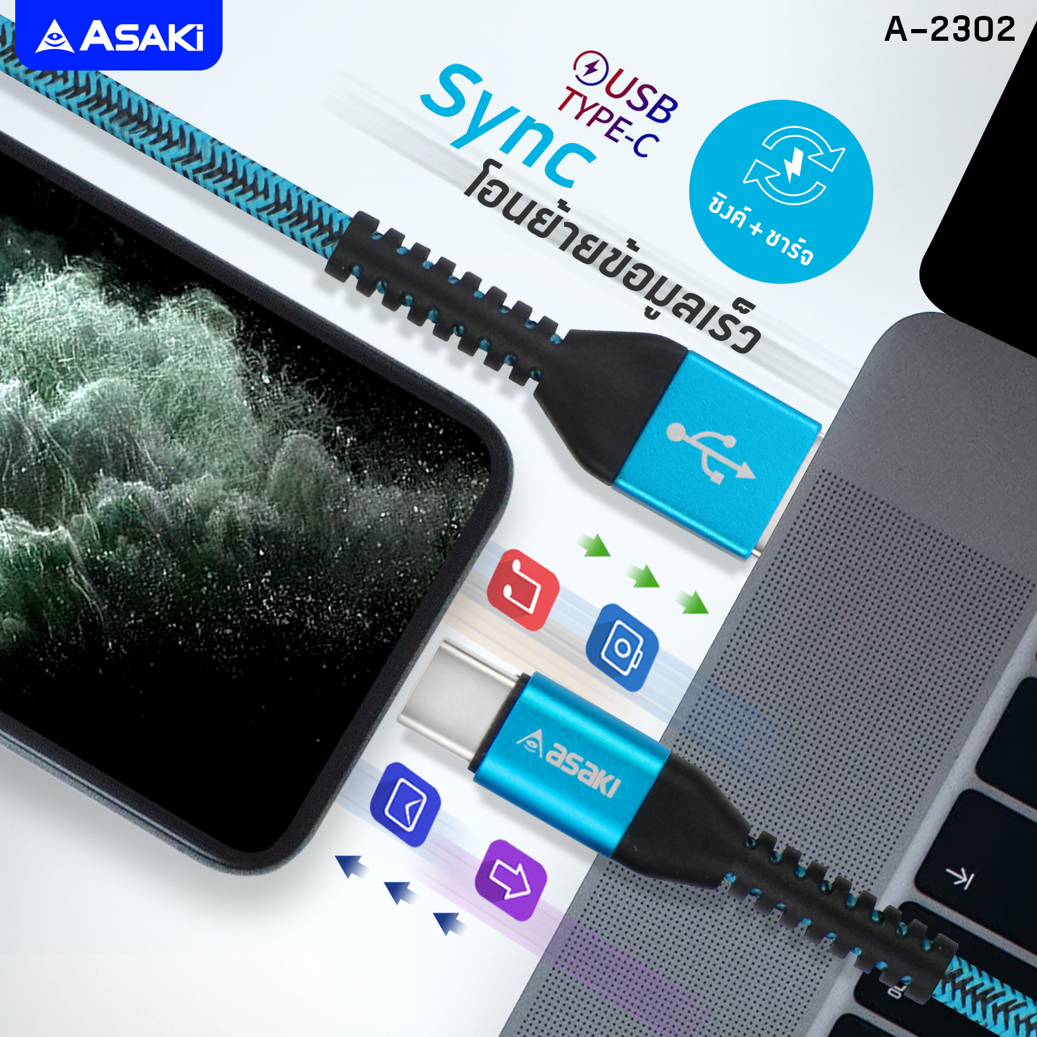 สายชาร์จและซิงค์ข้อมูล Type-C USB จ่ายไฟ 5A สายยาว 1.5 เมตร