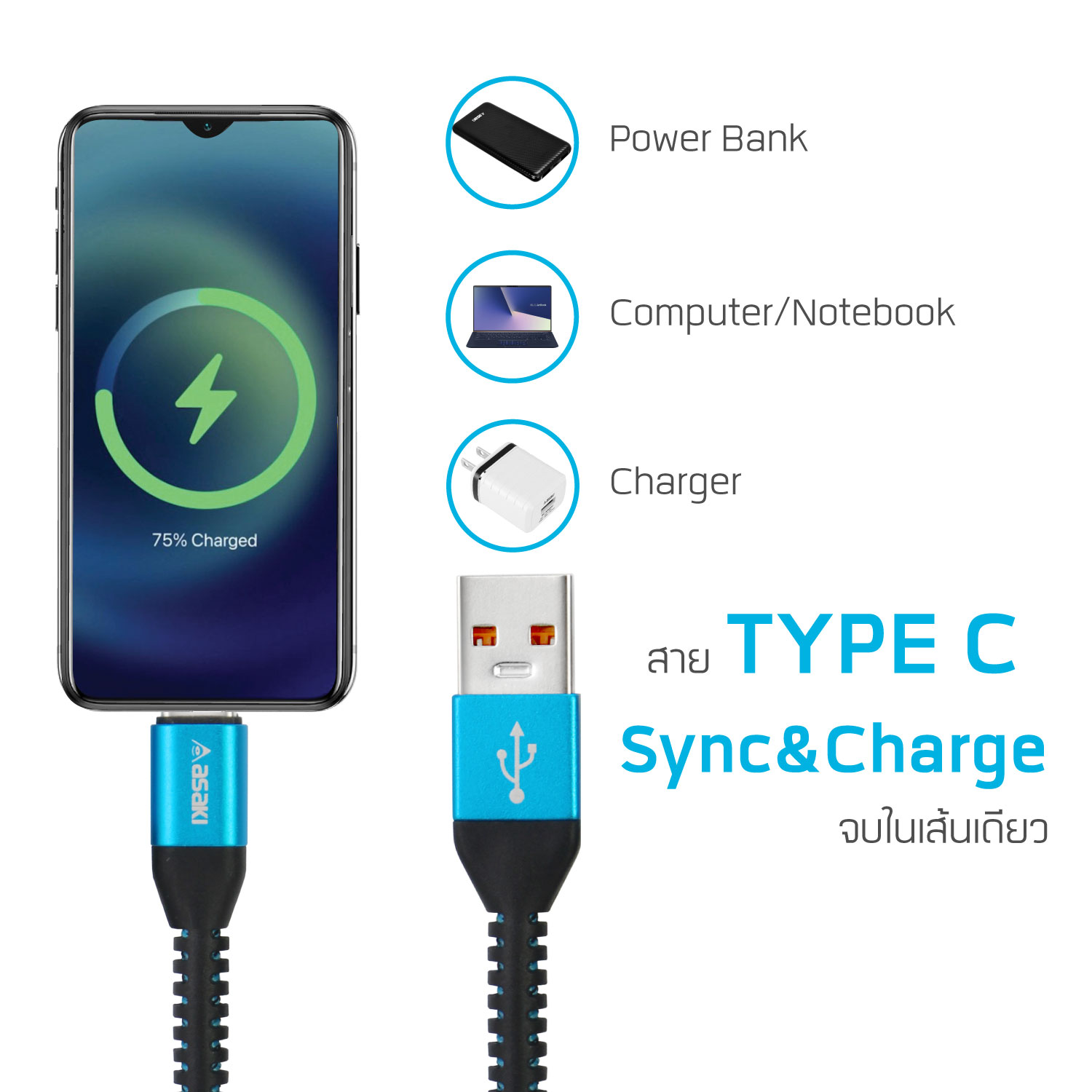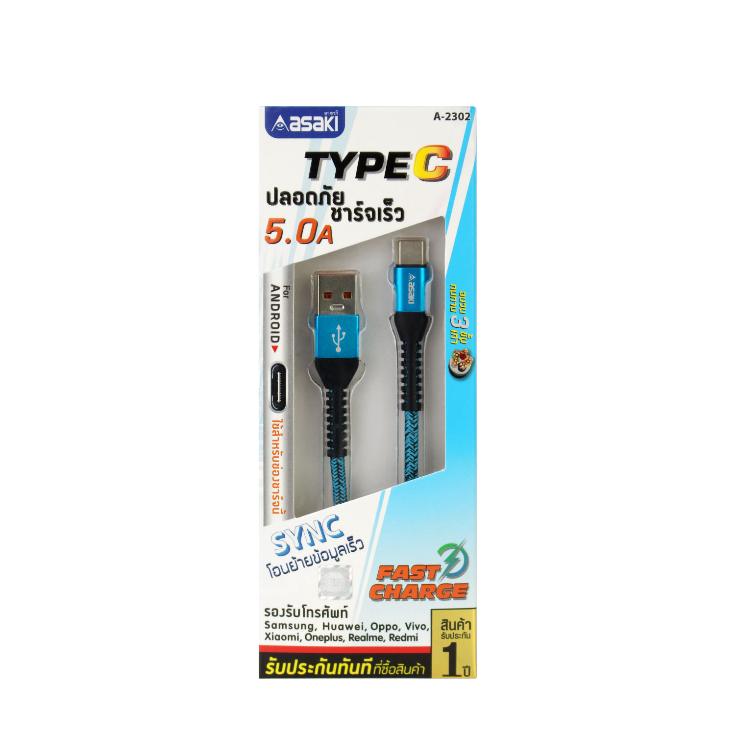 สายชาร์จและซิงค์ข้อมูล Type-C USB ชาร์จเร็ว 5A สายยาว 1เมตร